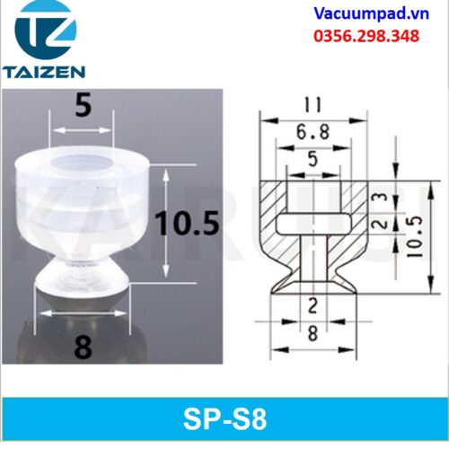SP-8S-1,SP-S8 | Giác hút, đầu hút, núm hút chân không 1 tầng SP