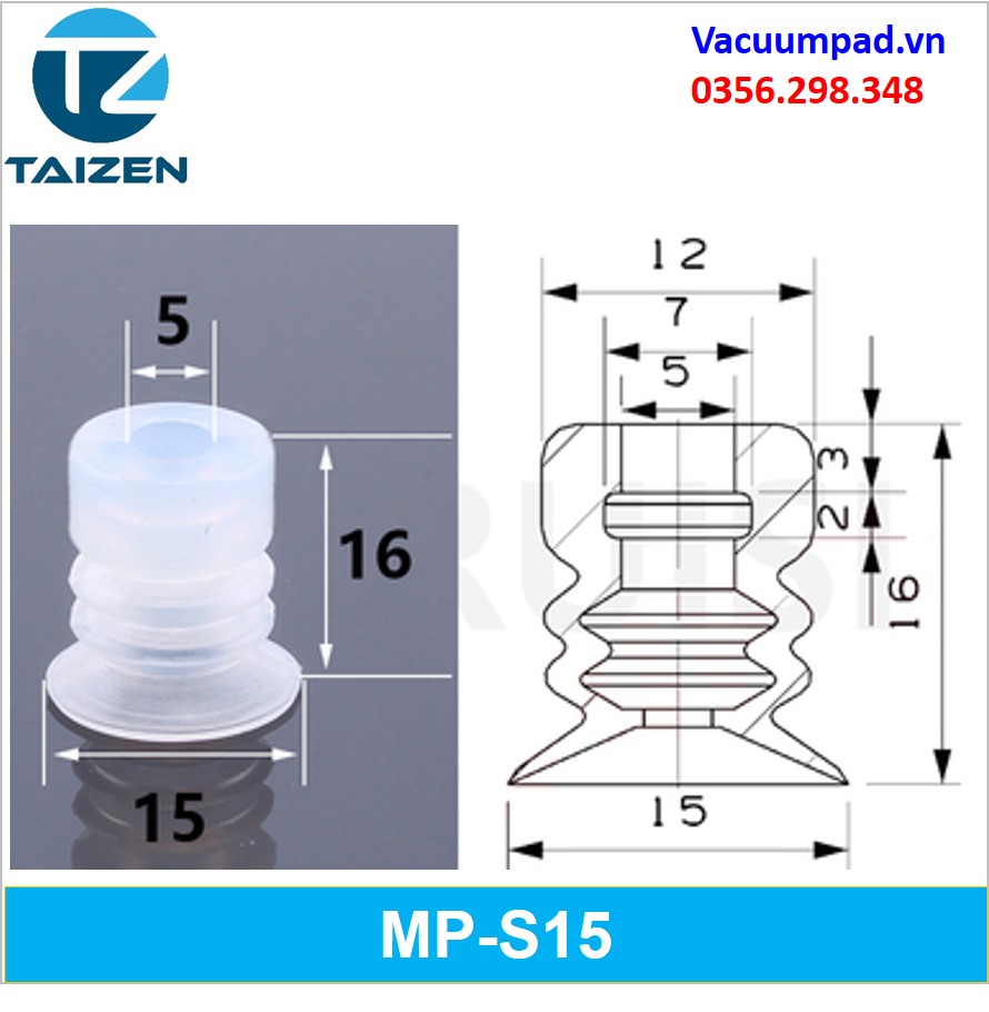 MP-S15 SP-15-3 | Giác hút, đầu hút, núm hút chân không là 1 dụng cụ dùng để hút chân không được sử dụng để hút các loại hàng, sản phẩm trong các cơ cấu máy tự động hóa.