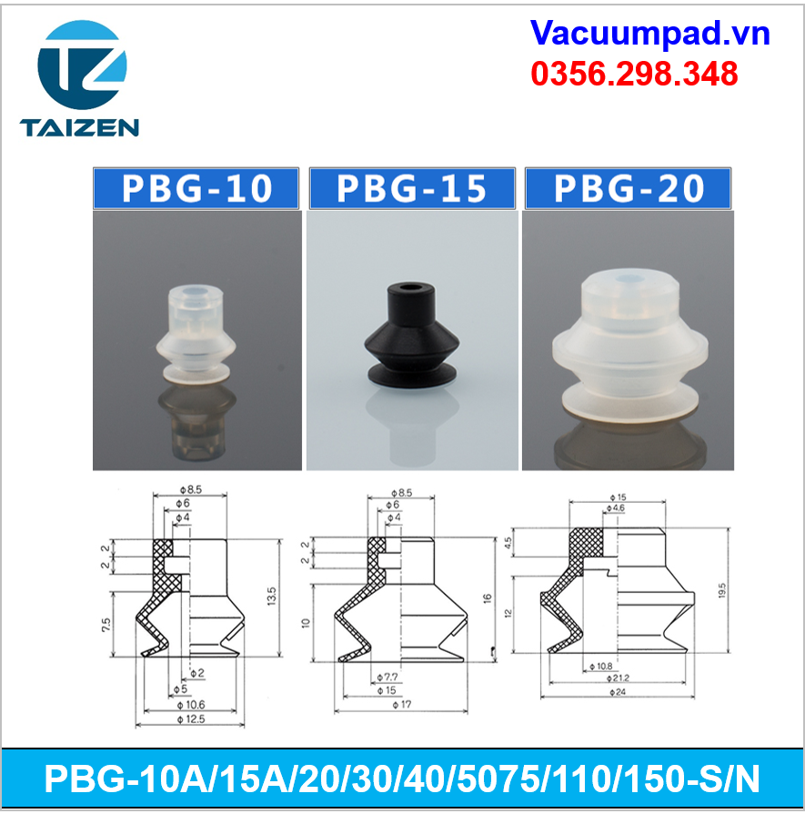 PBG-10A/15A/20/30/40/50/75/110/150-S/N Giác hút, đầu hút chân không khí nén (MYOUTOKU)