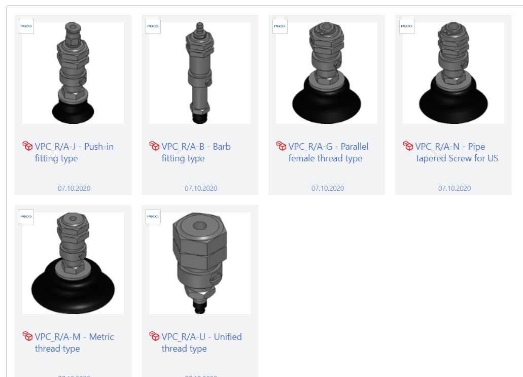 Pisco VPC R/A-J/B/G/N/M/U giác hút chân không pisco với đa dạng phổ biến các mẫu mã bao gồm đầu hút co su và phần lắp ráp: