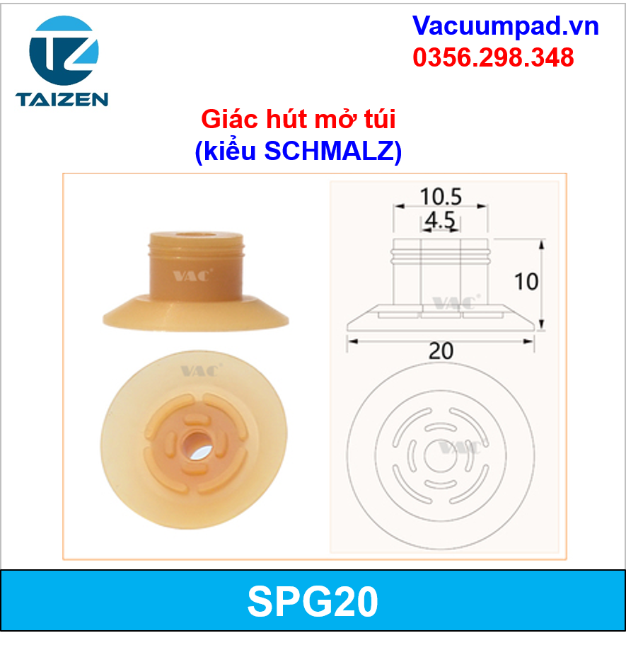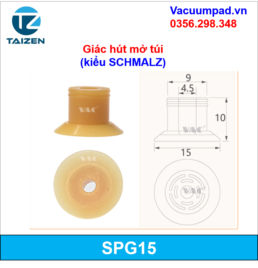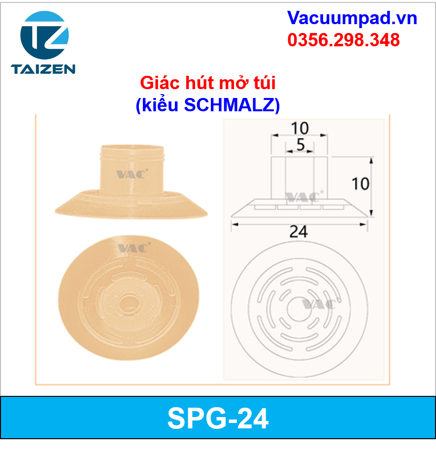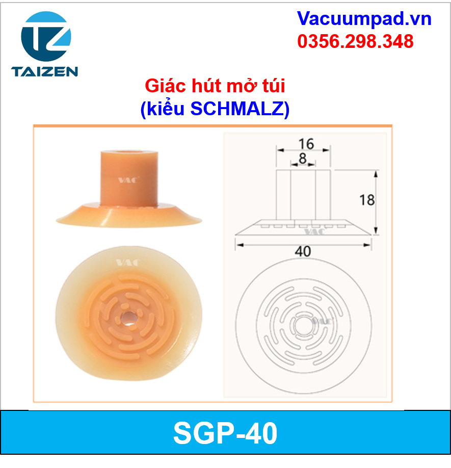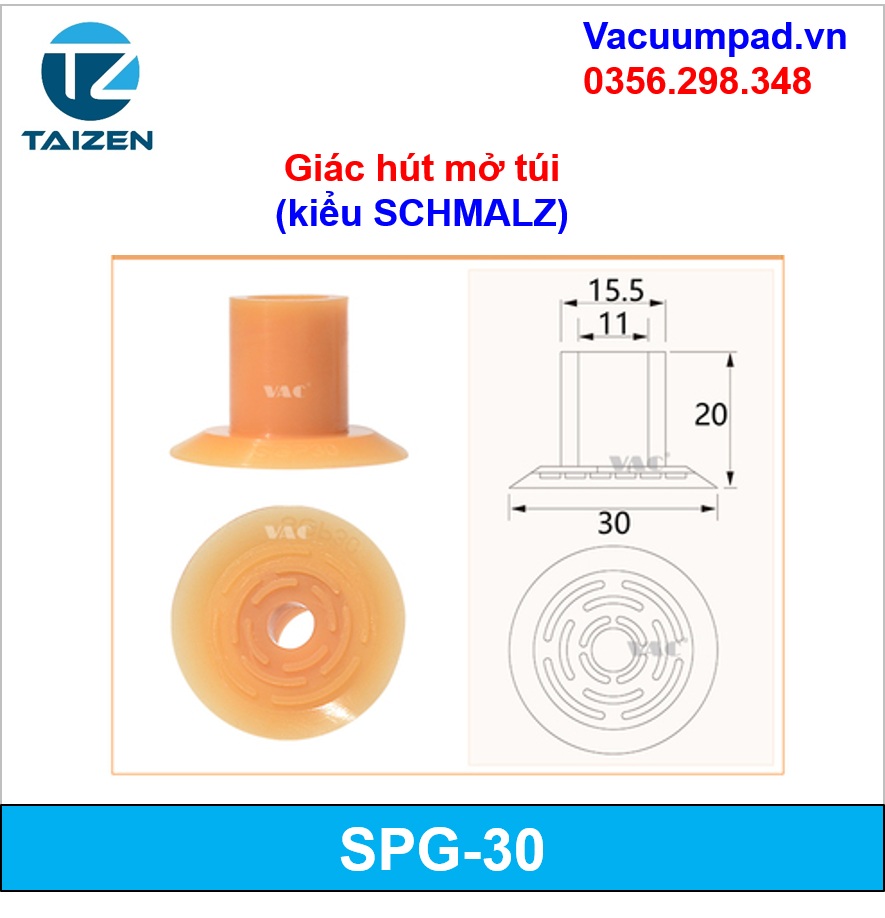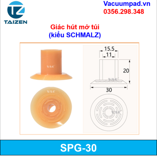 SGP-15, SGP-20, SGP-24, SGP-30, SGP-40 Giác hút, đầu hút chân không mở miệng túi (kiểu SCHMALZ)