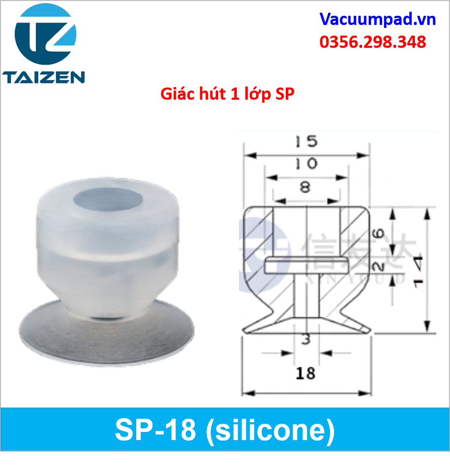 SP-18S SP-18 | Giác hút, đầu hút, núm hút chân không là 1 dụng cụ dùng để hút chân không được sử dụng để hút các loại hàng, sản phẩm trong các cơ cấu máy tự động hóa.
