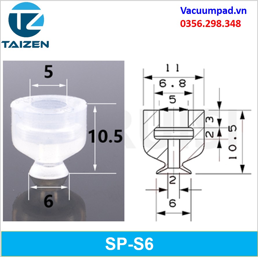SP-6S-1 SP-S6 | Giác hút, đầu hút, núm hút chân không là 1 dụng cụ dùng để hút chân không được sử dụng để hút các loại hàng, sản phẩm trong các cơ cấu máy tự động hóa.