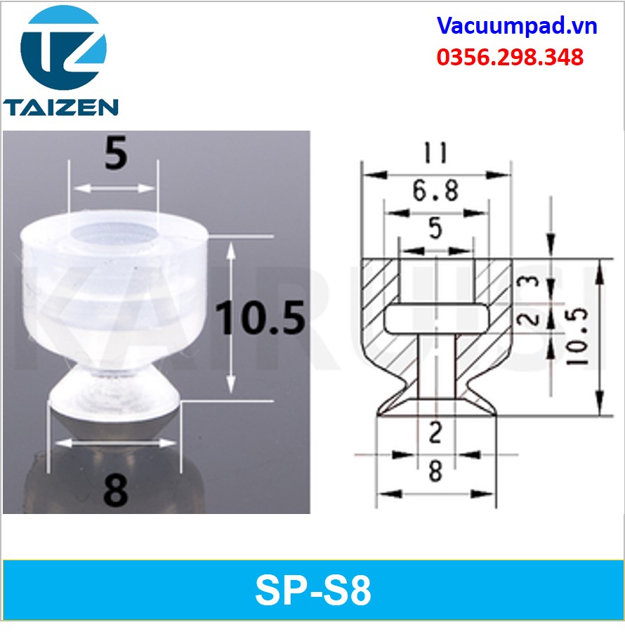 SP-8S-1 SP-S8 | Giác hút, đầu hút, núm hút chân không là 1 dụng cụ dùng để hút chân không được sử dụng để hút các loại hàng, sản phẩm trong các cơ cấu máy tự động hóa.
