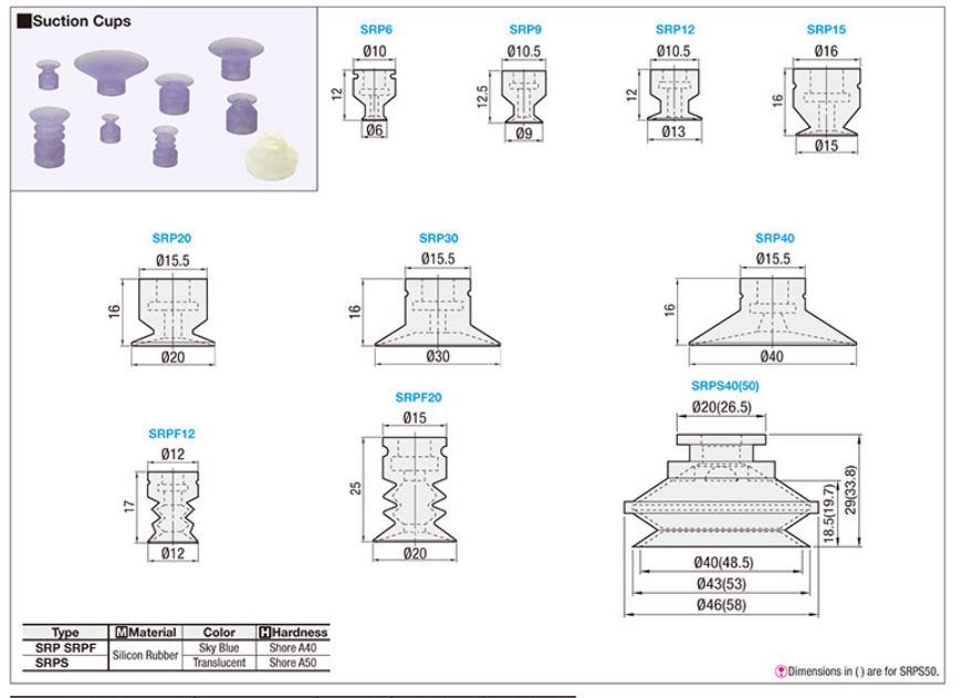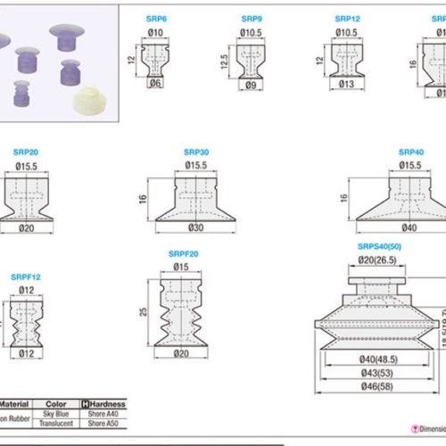 SRP9 misumi, núm hút đầu hút chân không khí nén với các kích thước sau: