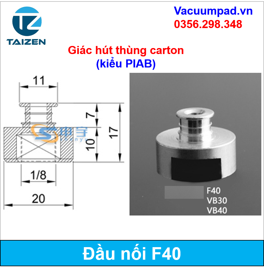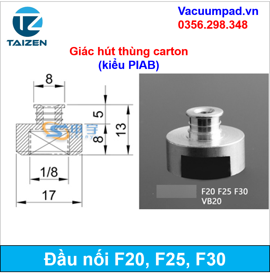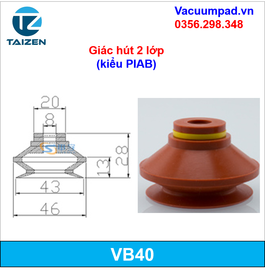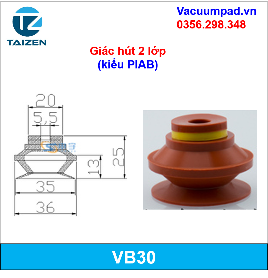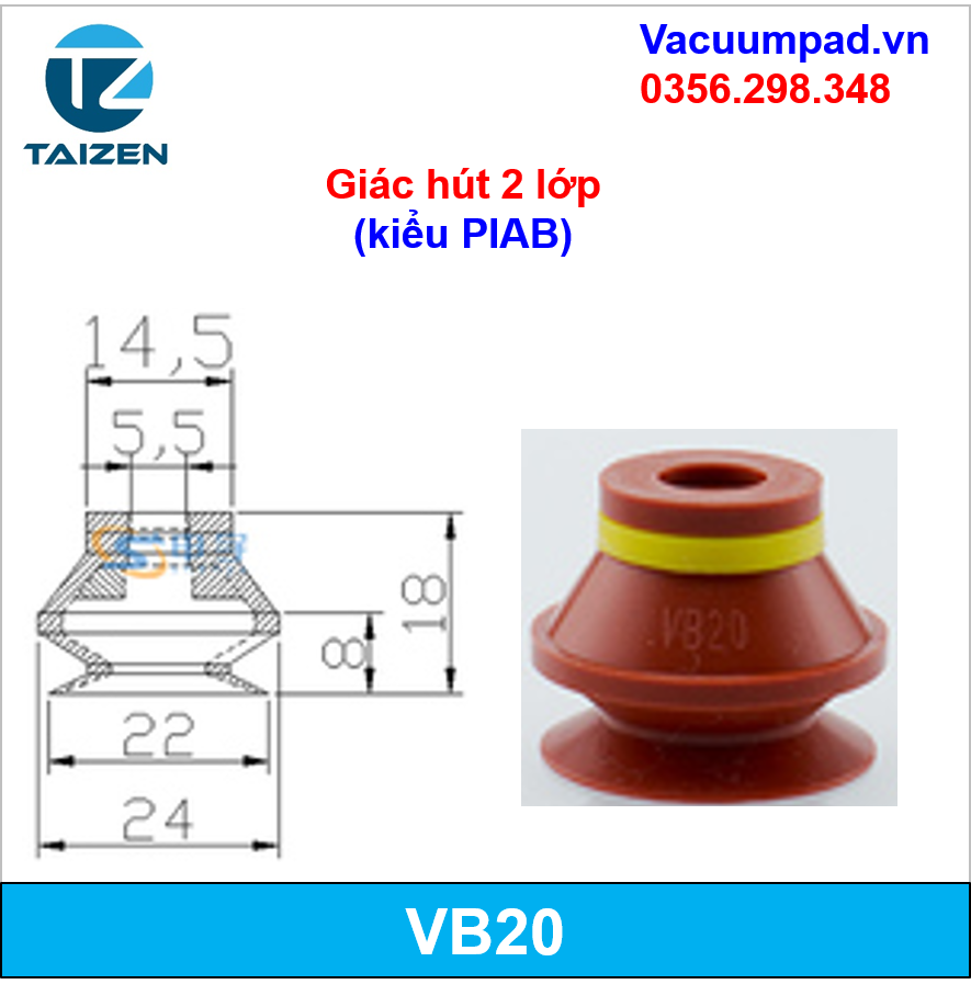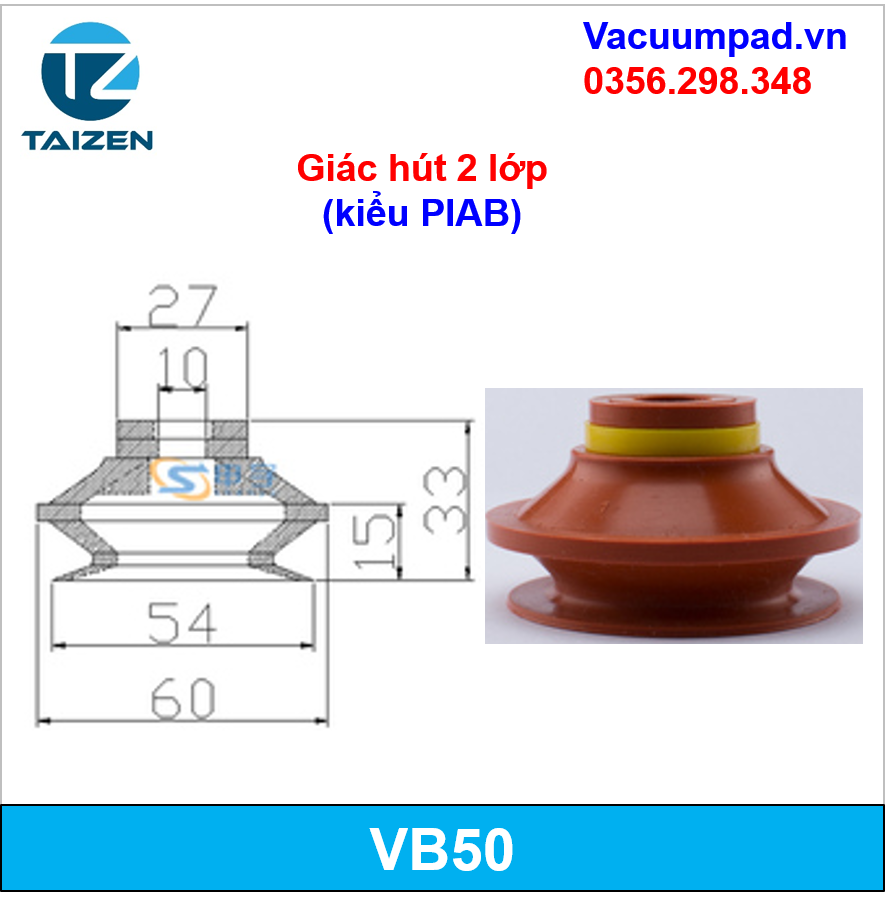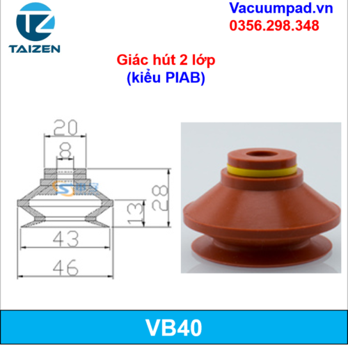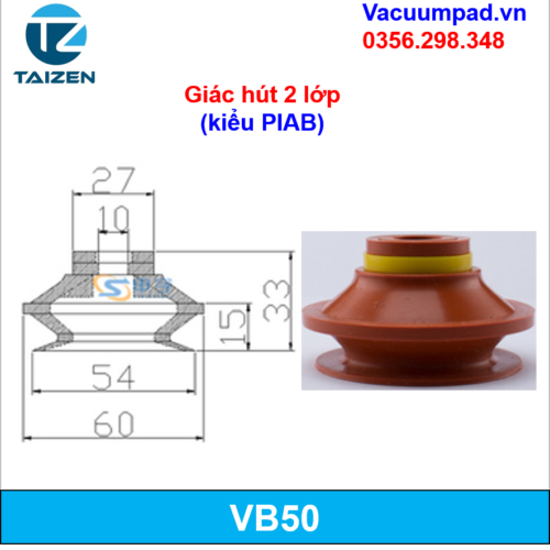 VB20, VB30, VB40, VB50 Giác hút, đầu hút chân không 2 tầng (kiểu Piab)
