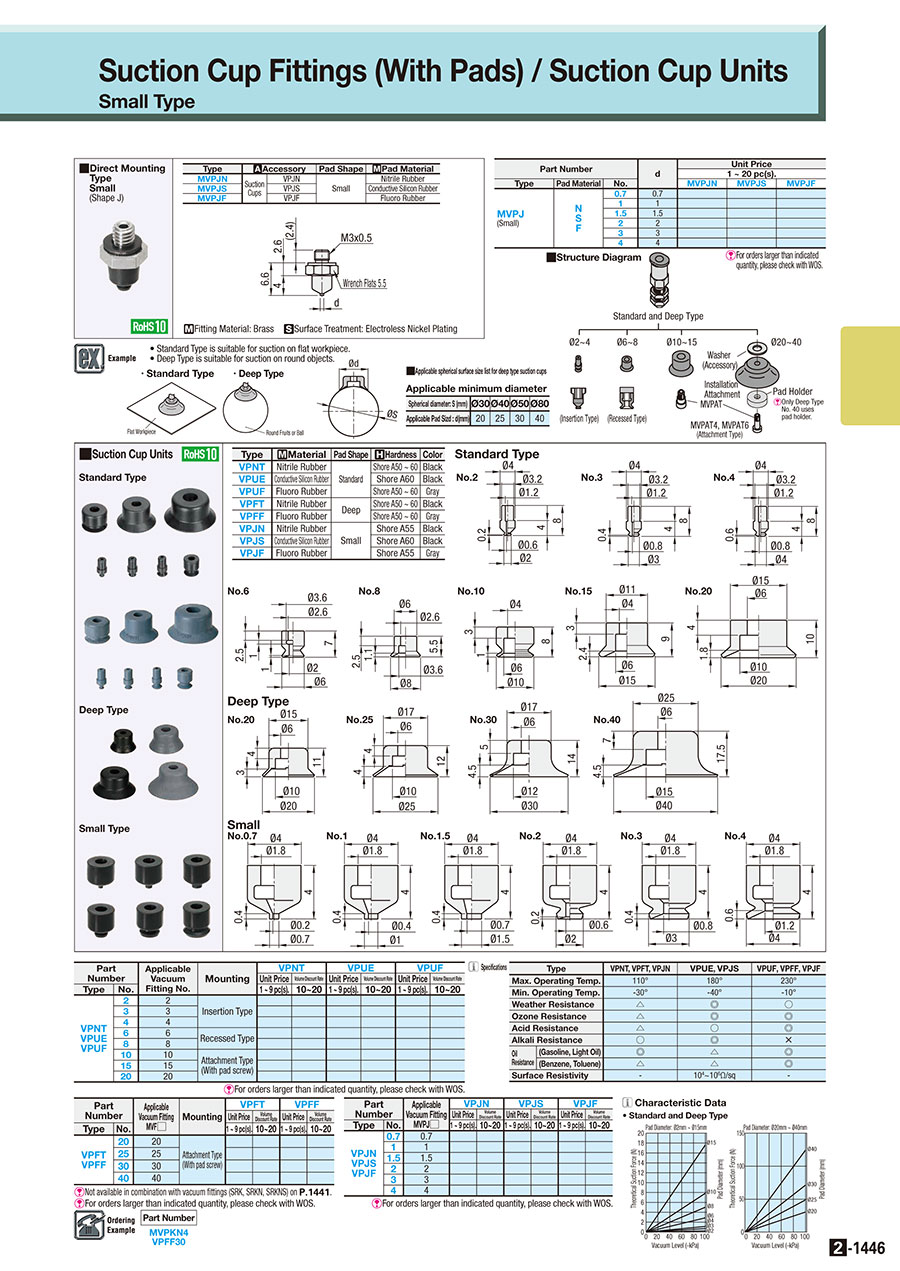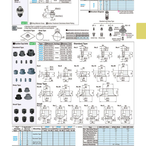 VPF, VPU, VPE, VPJ giác hút, núm hút chân không Misumi
