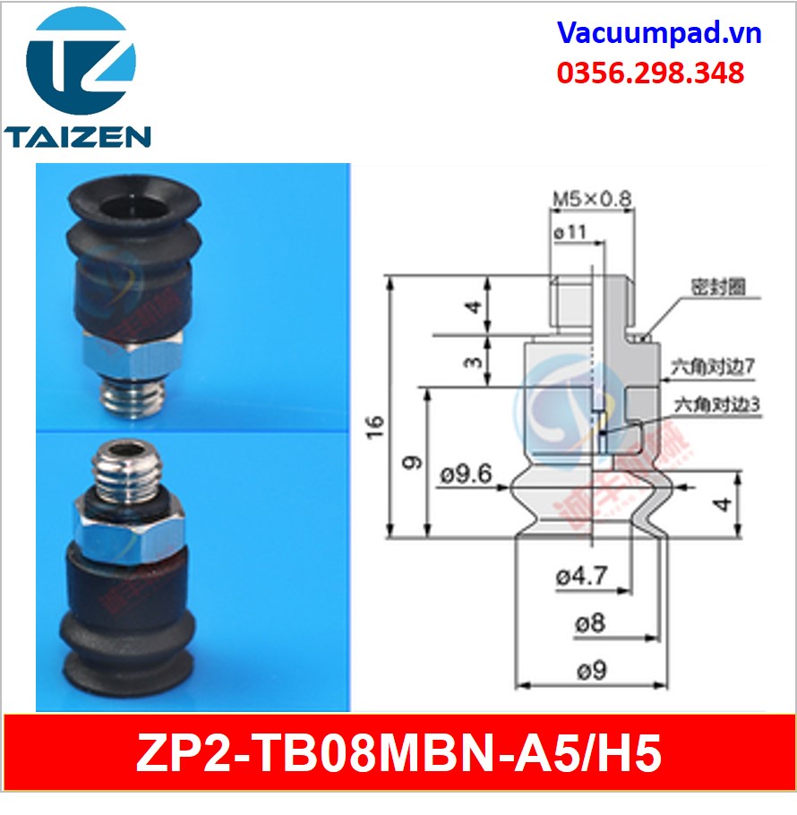 ZP2-TB08MBN-A5, ZP2-TB08MBN-B5 được làm từ vật liệu cao su cao su silicone và đầu nối ren M5, trong và ngoài: