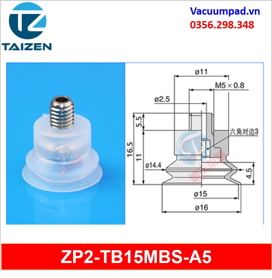 ZP2-TB15MBS-A5, ZP2-TB15MBS-B5 được làm từ vật liệu cao su cao su silicone và đầu nối ren M5, trong và ngoài: