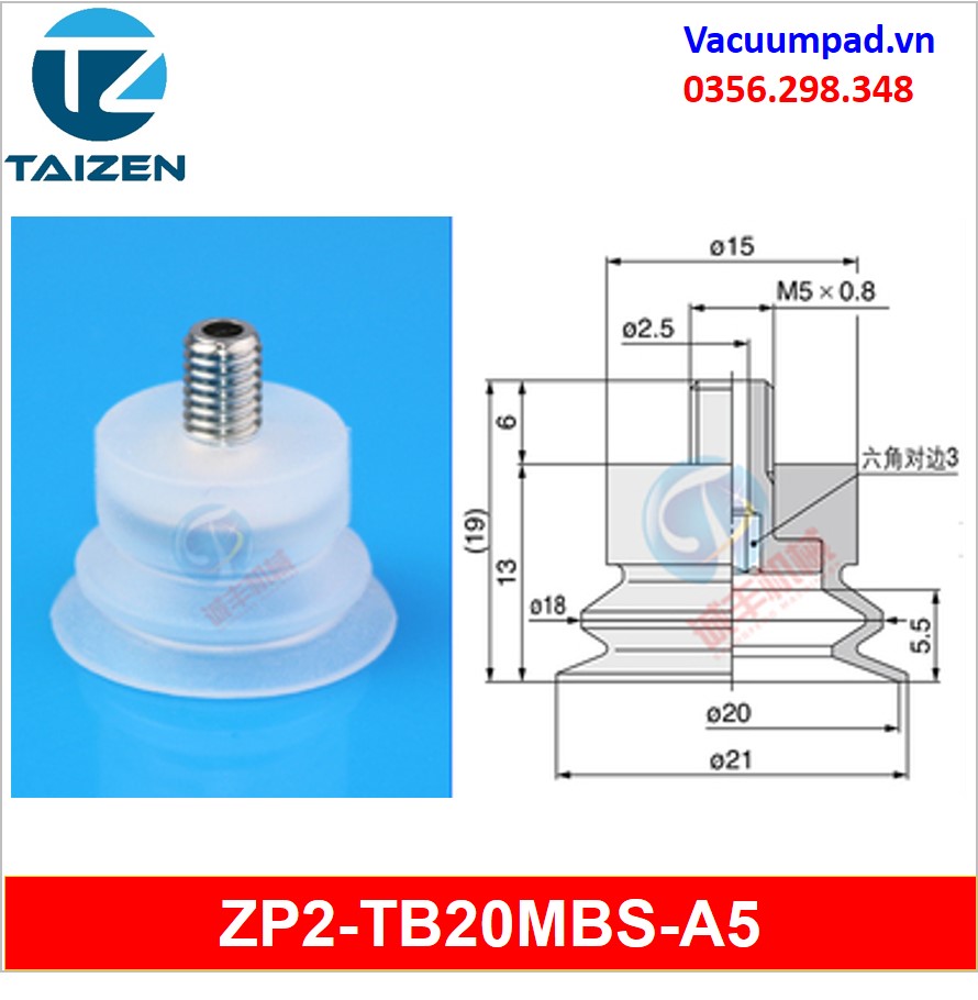 ZP2-TB20MBS-A5, ZP2-TB20MBS-B5 được làm từ vật liệu cao su cao su silicone và đầu nối ren M5, trong và ngoài: