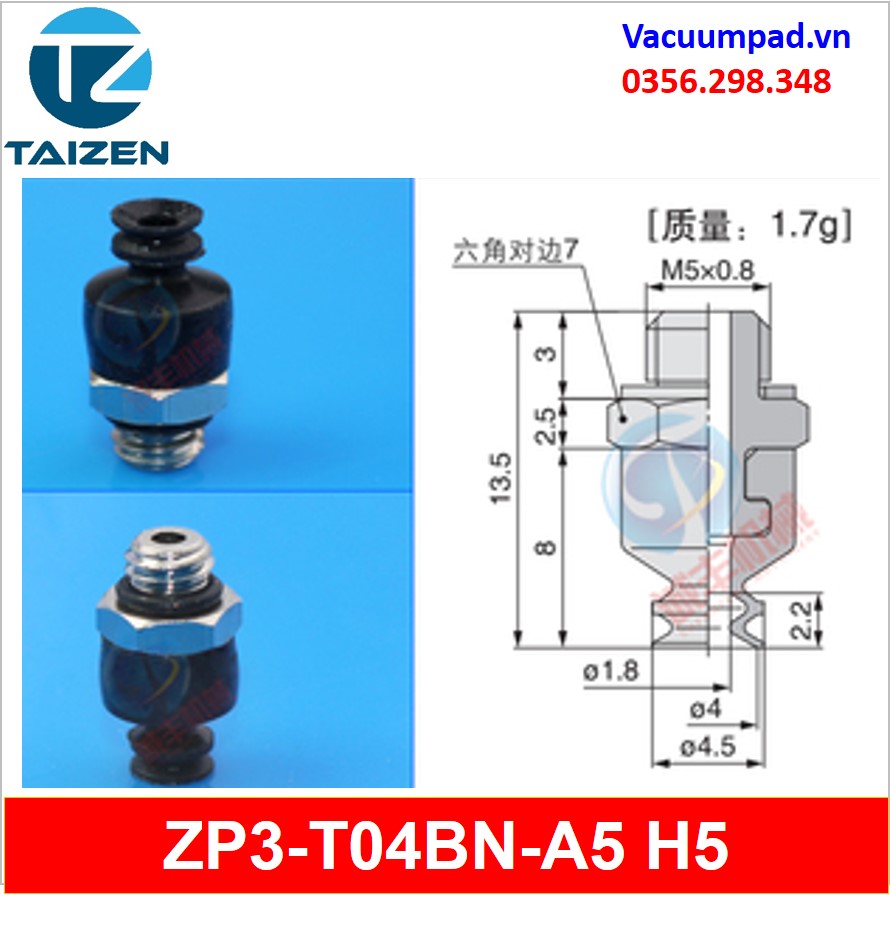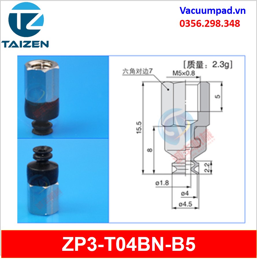 ZP3-T04BN-A5, ZP3-T04BN-B5 được làm từ vật liệu cao su cao su silicone và đầu nối ren M5, trong và ngoài: