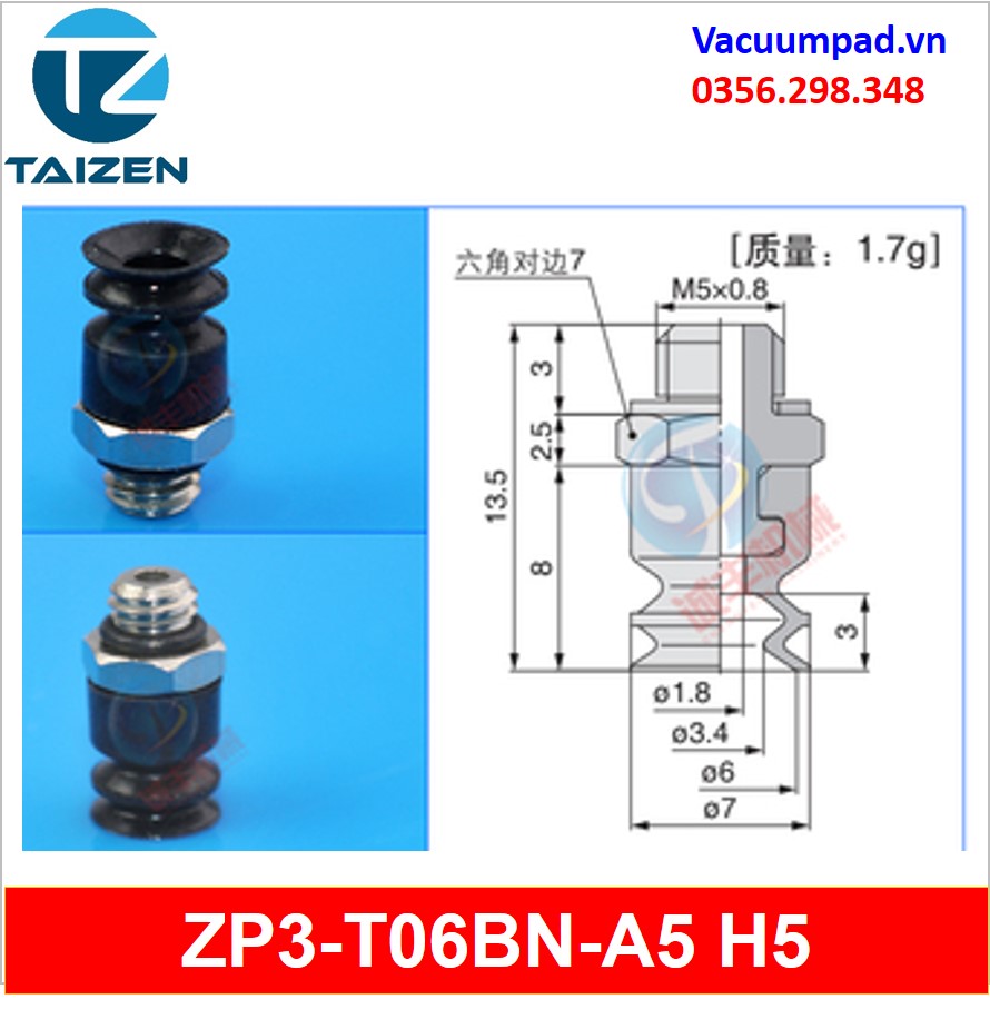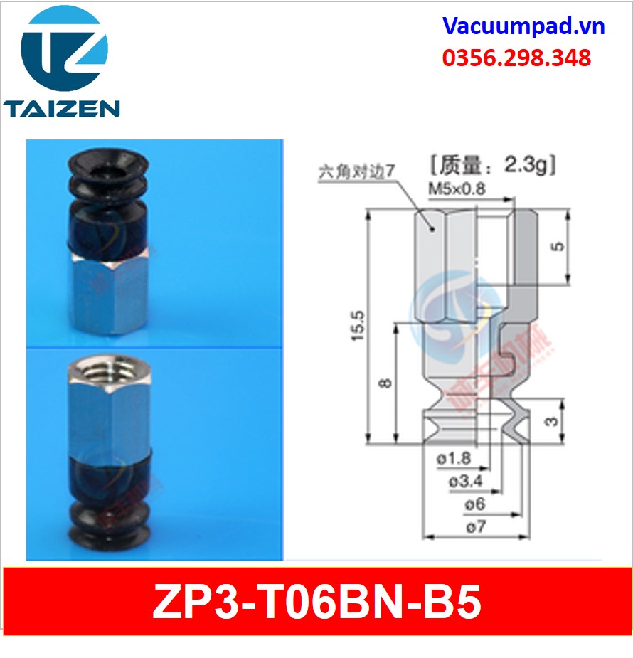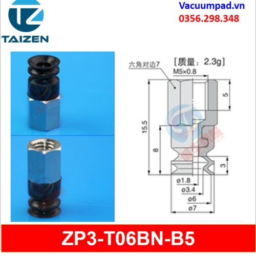 ZP3-T06BN-A5, ZP3-T06BN-B5 được làm từ vật liệu cao su cao su silicone và đầu nối ren M5, trong và ngoài: