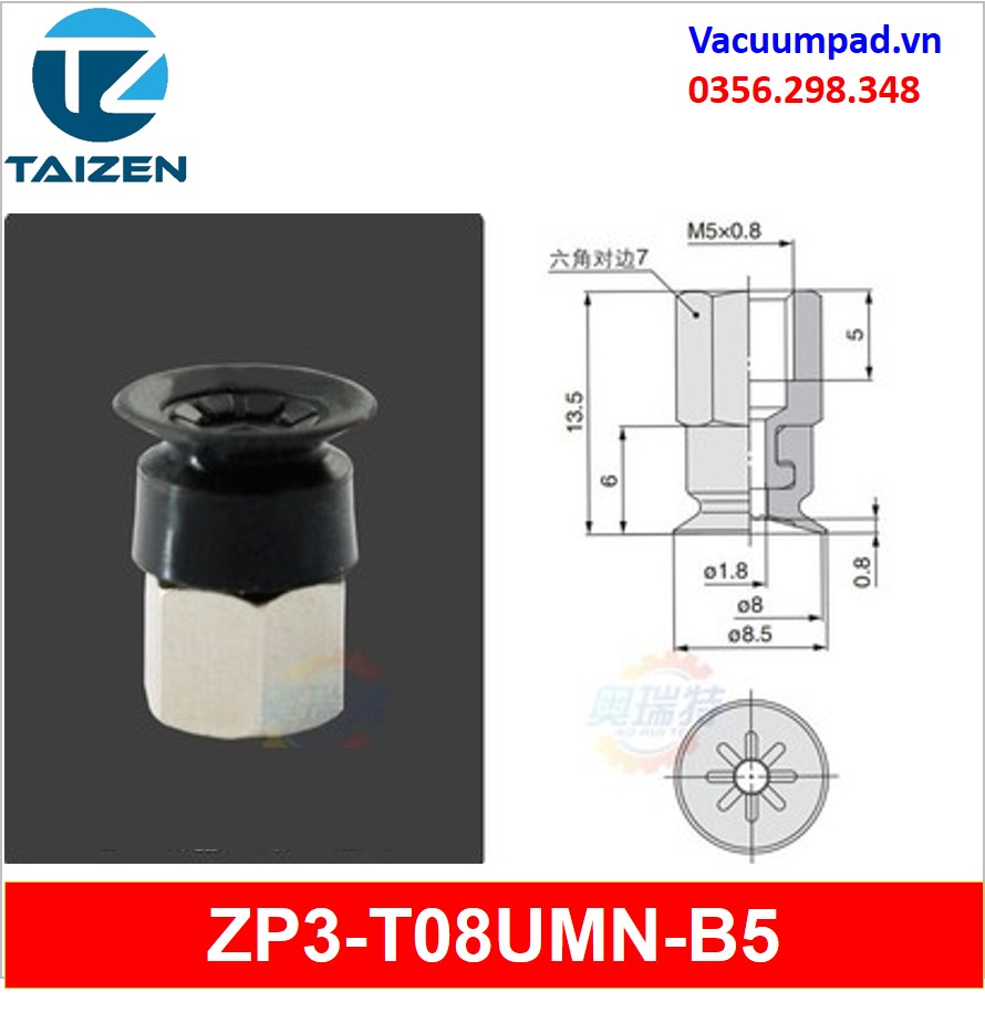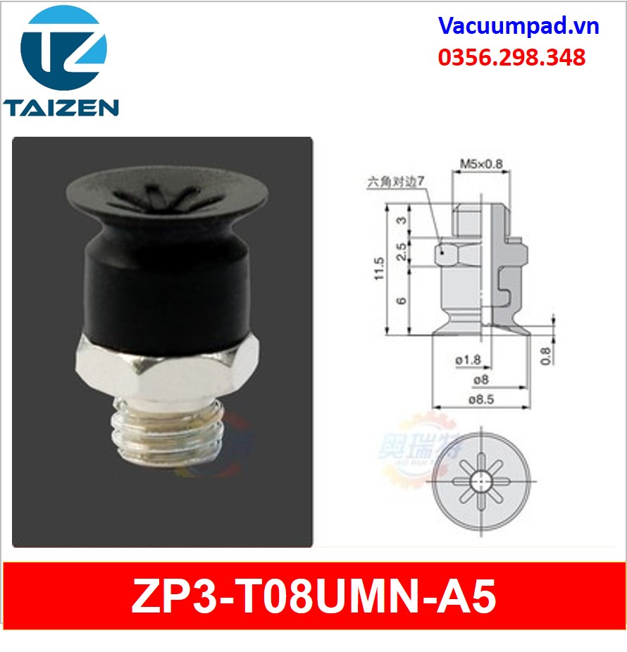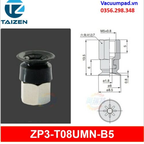 ZP3-T08UMN-A5, ZP3-T08UMN-B5 được làm từ vật liệu cao su cao su silicone và đầu nối ren M5, trong và ngoài: ZP3A-T2-A5, ZP3A-T2-B5, ZP3A-T3-A5, ZP3A-T3-B5, ZP3A-T1-A3