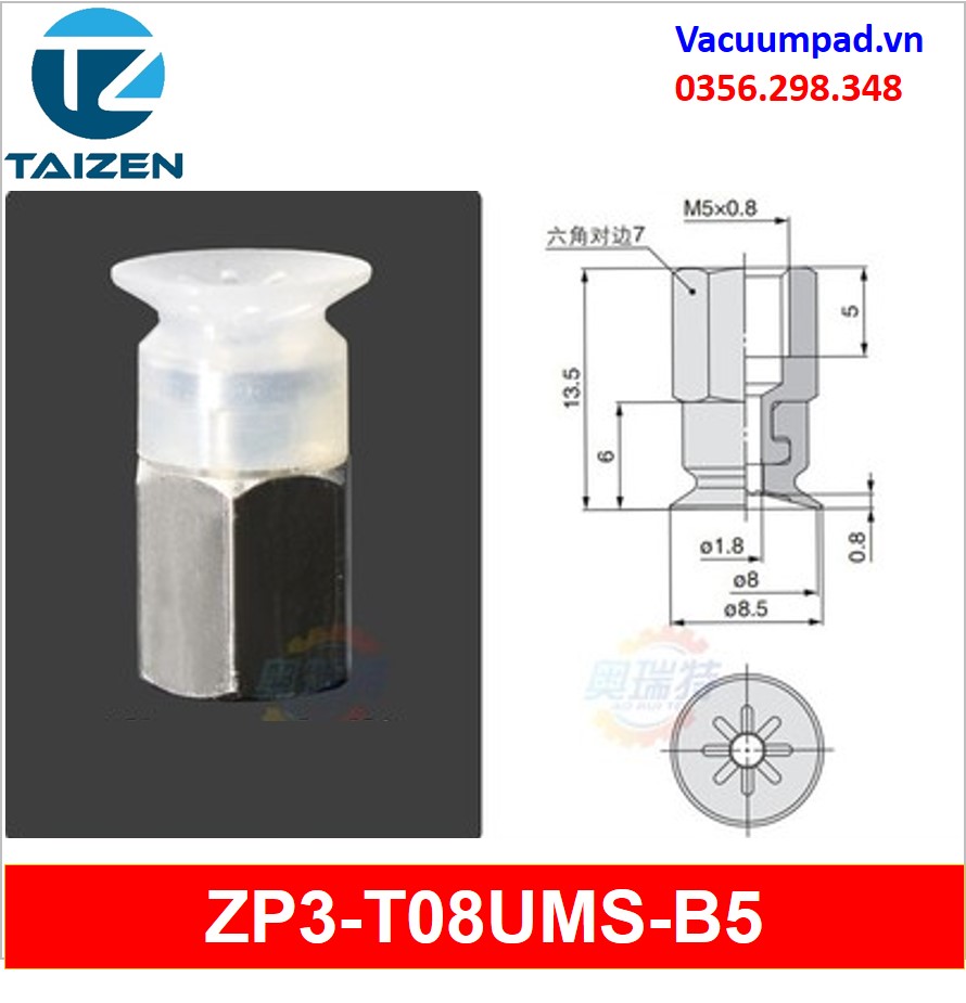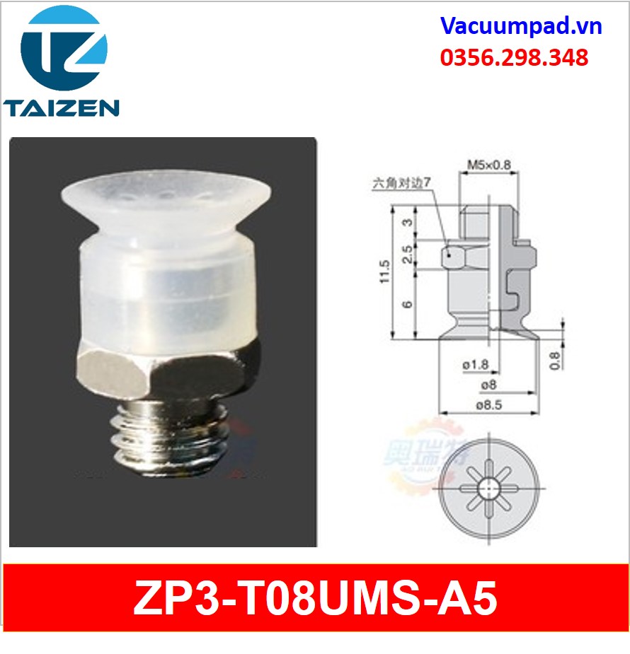 ZP3-T08UMS-A5, ZP3-T08UMS-B5 được làm từ vật liệu cao su cao su silicone và đầu nối ren M5, trong và ngoài: ZP3A-T2-A5, ZP3A-T2-B5, ZP3A-T3-A5, ZP3A-T3-B5, ZP3A-T1-A3