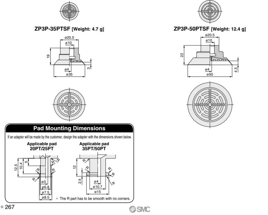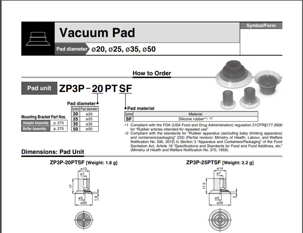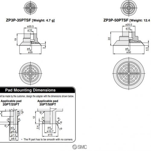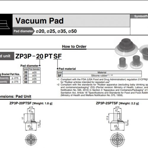 ZP3P-25PTSF SMC thuộc series pad hút chân không SMC ZP3, với vật liệu làm từ cao su silicone với tính đàn hồi cao, phù hợp vơi nhiều cơ cấu tự động hóa