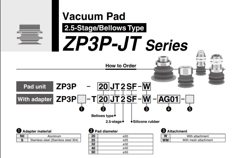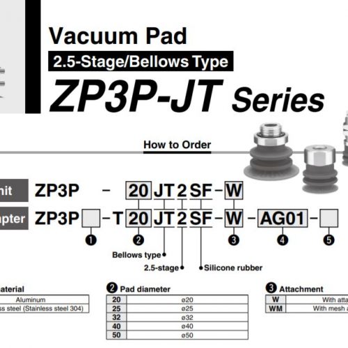 ZP3P-40JT2SF SMC thuộc series pad hút chân không SMC ZP3P, với vật liệu làm từ cao su silicone với tính đàn hồi cao, phù hợp vơi nhiều cơ cấu tự động hóa