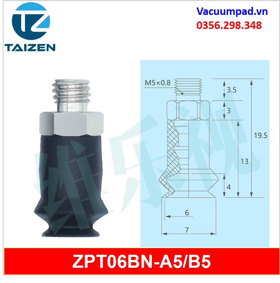 ZPT06BN-A5, ZPT06BN-B5 được làm từ vật liệu cao su cao su silicone và đầu nối ren M5, trong và ngoài: