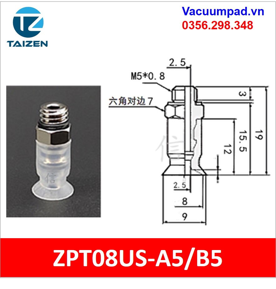 ZPT08US-A5, ZPT08US-B5 được làm từ vật liệu cao su cao su silicone và đầu nối ren M5, trong và ngoài: