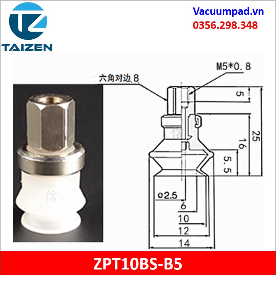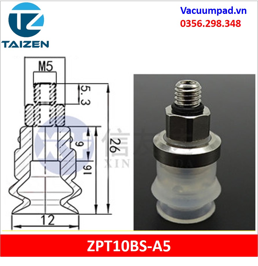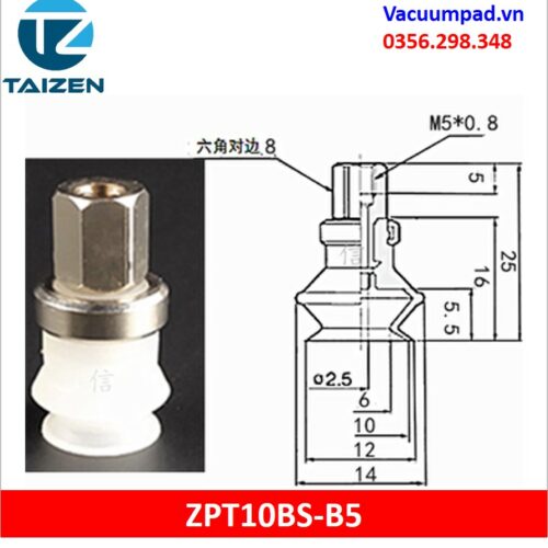 ZPT10BS-A5, ZPT10BS-B5 được làm từ vật liệu cao su cao su silicone và đầu nối ren M5, trong và ngoài: