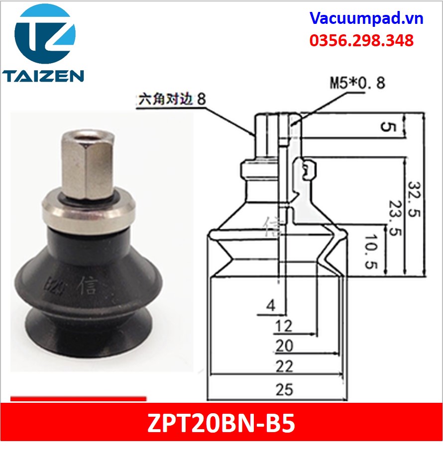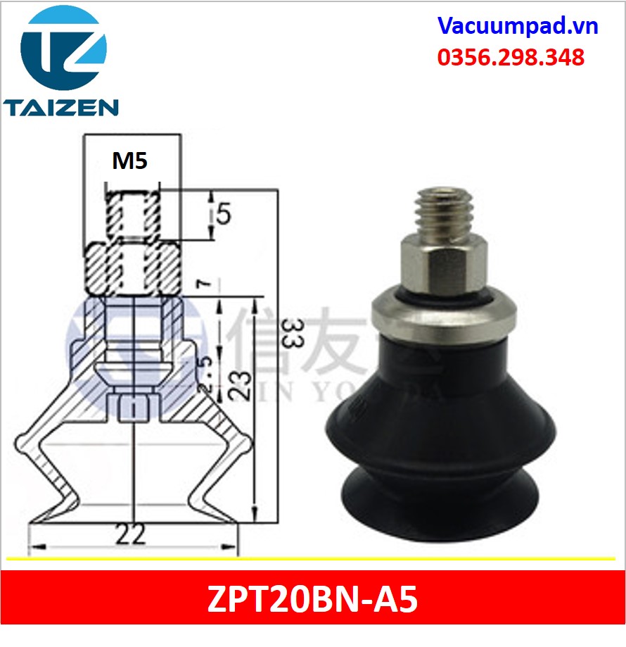 ZPT20BN-A5, ZPT20BN-B5 được làm từ vật liệu cao su cao su silicone và đầu nối ren M5, trong và ngoài: