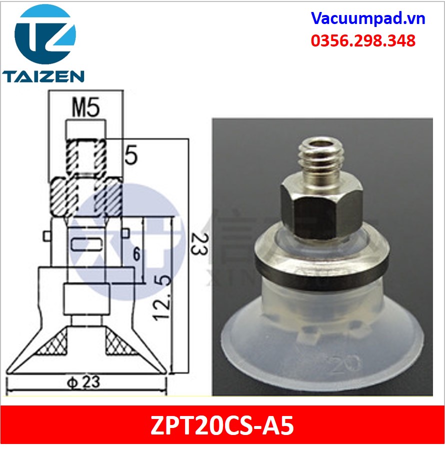 ZPT20CS-A5 ZPT20CS-B5 được làm từ vật liệu cao su cao su silicone và đầu nối ren M5, trong và ngoài: