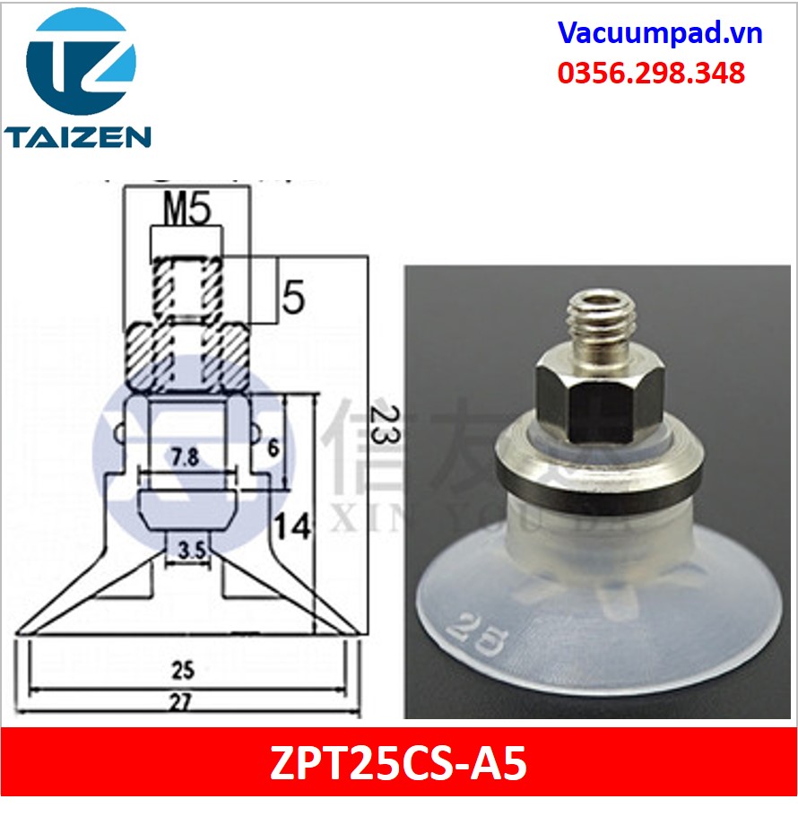 ZPT25CS-A5 ZPT25CS-B5 được làm từ vật liệu cao su cao su silicone và đầu nối ren M5, trong và ngoài: