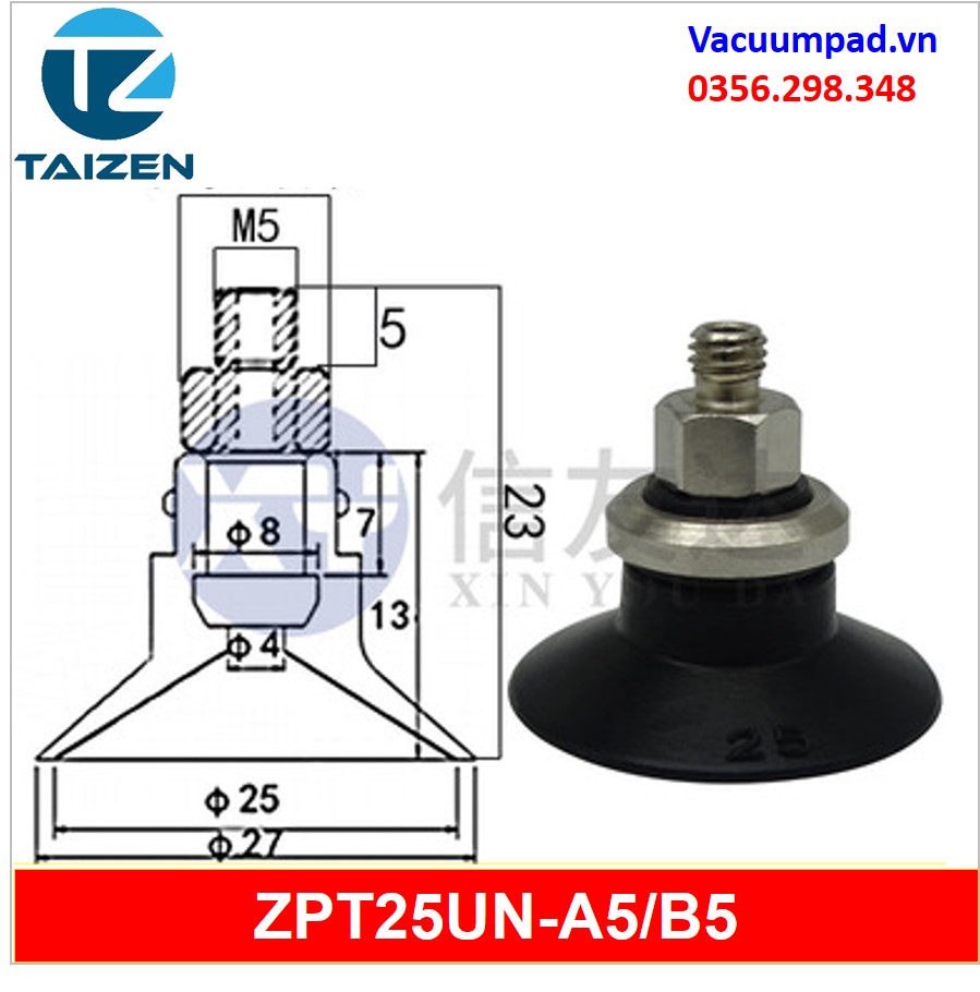 ZPT25UN-A5, ZPT25UN-B5 được làm từ vật liệu cao su cao su silicone và đầu nối ren M5, trong và ngoài: