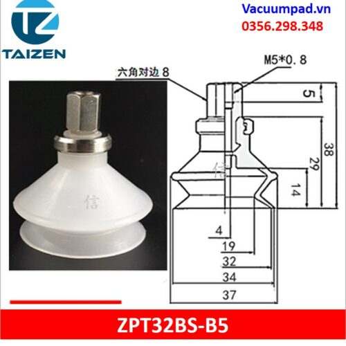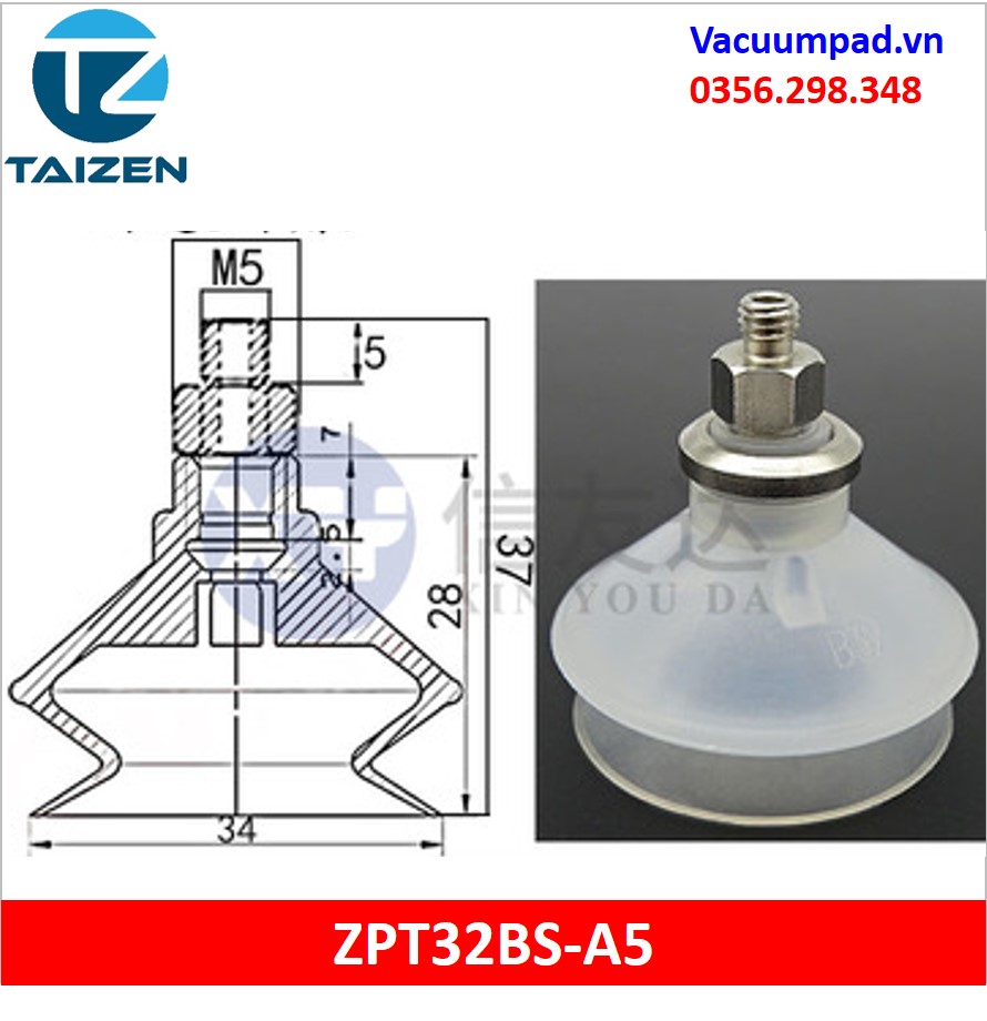 ZPT32BS-A5, ZPT32BS-B5 được làm từ vật liệu cao su cao su silicone và đầu nối ren M5, trong và ngoài: