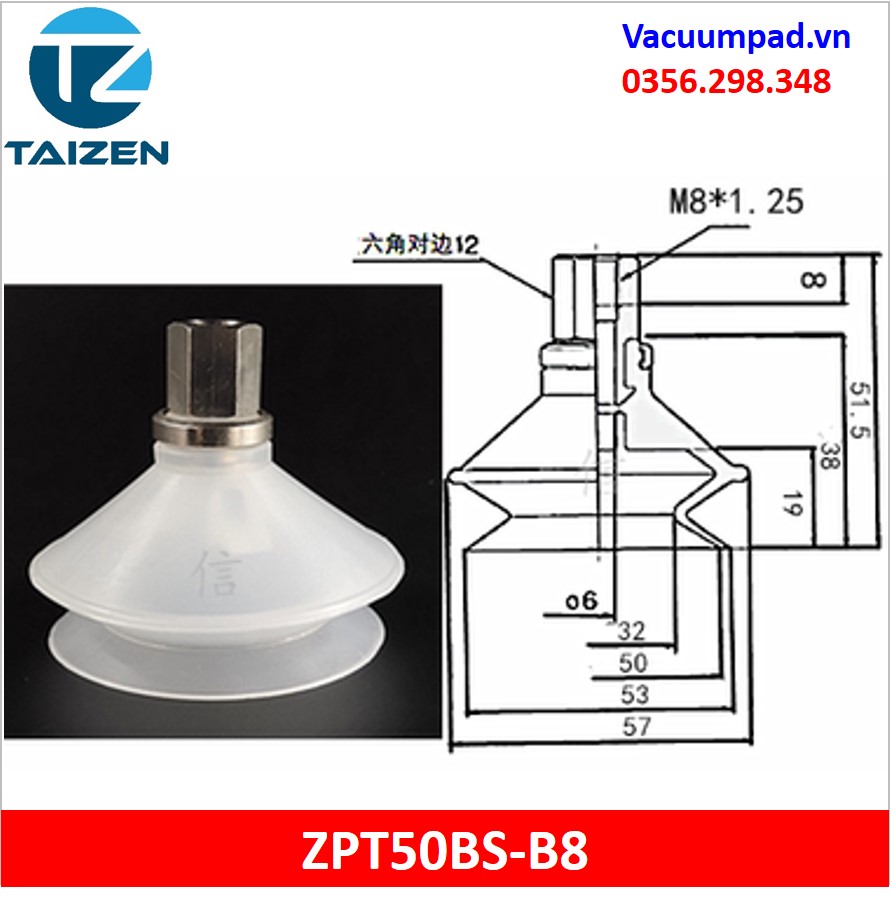 ZPT50BS-B8 được làm từ vật liệu cao su cao su silicone và đầu nối ren M8, trong và ngoài: