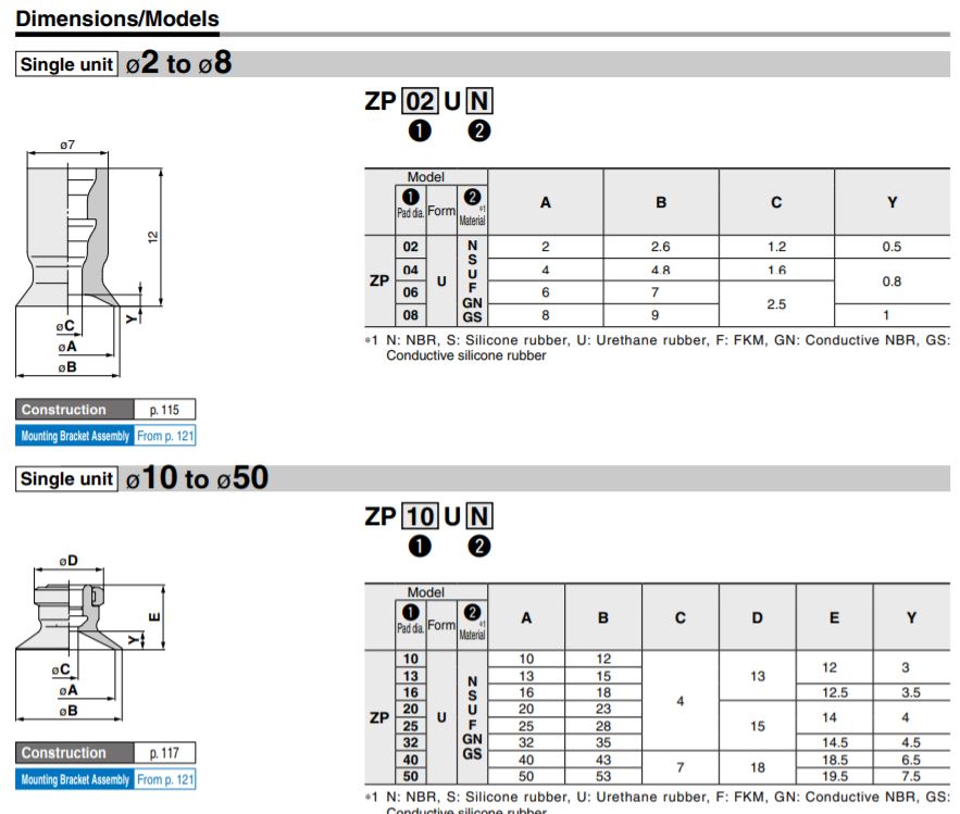 | ZP16UGN | ZP20UGN | ZP25UGN | ZP32UGN | ZP40UGN | ZP50UGN |