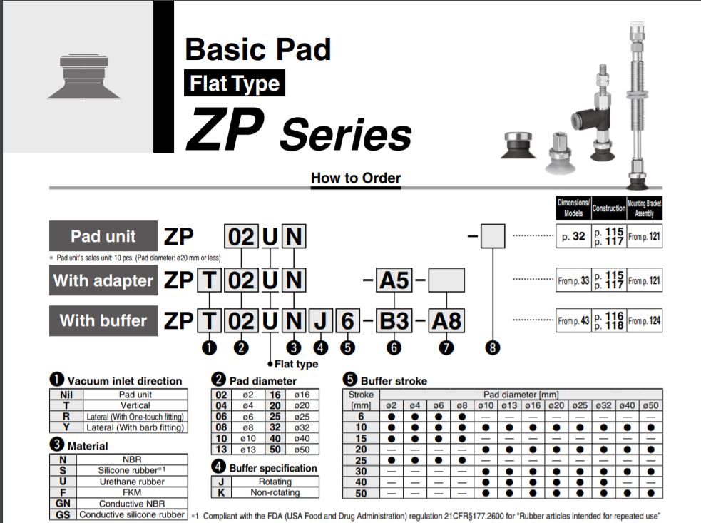 Vật liệu đầu hút chân không khí nén ZPUN ZPUS được làm từ các loại cao su: